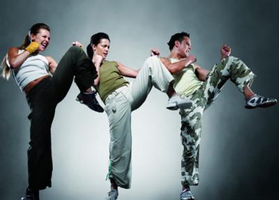 搏擊操,是一種結合了拳擊、泰拳、跆拳道、散手、太極的基本動作,遵循健美操的編排方法,在強有力的音樂節拍下完成的一種身體鍛煉。有氧搏擊操英文名為kickboxing,早是由歐洲的搏擊選手與職業健身操運動員推出的,其具體形式是將拳擊、空手道、跆拳道功夫,甚一些舞蹈動作混合在一起,并配合強勁的音樂,成為健身房團體課中一類風格獨特的健身操。