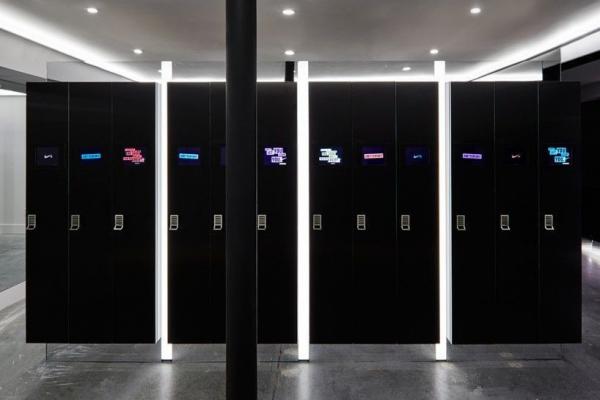 更衣室的每一個(gè)儲(chǔ)物柜上都嵌有一塊屏幕,可以顯示顧客的名字與信息。