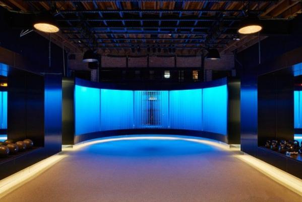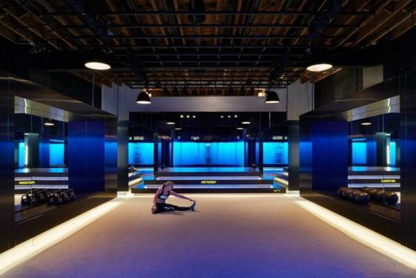 因?yàn)殛P(guān)乎運(yùn)動(dòng)體驗(yàn),又界定在、私人的定位,整個(gè)健身房的色調(diào)與燈光運(yùn)用得十分講究,它不同于一般健身房明亮的布局,卻用了更顯低調(diào)的黑色搭配著不同的燈光來(lái)烘托整個(gè)空間的私密感。空間里每個(gè)鏡子的擺放都是巧思,想要盡量讓 VIP 顧客們?cè)谶@里尋到塑造形體之美的必要性。地面部分則是用廢棄的耐克運(yùn)動(dòng)鞋的橡膠鞋底做成的材料 Nike Grind 鋪設(shè)而成。
