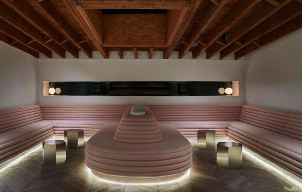 行樓上,設(shè)計(jì)師為顧客們創(chuàng)造了一個(gè)在運(yùn)動(dòng)過(guò)后可以完全放松下來(lái)的休息空間,淡粉色的座位區(qū)域想讓你擺脫上一分鐘還在揮汗如雨的記憶,迅速回到一個(gè)平和溫暖的氛圍中來(lái)。