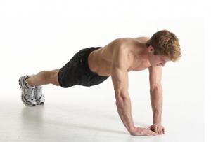 預(yù)備姿勢(shì):1、附身于地面,雙手分開(kāi)一個(gè)半肩寬,于肩部正下方支撐,肘關(guān)節(jié)微屈。2、并腿,雙腳掌支撐。3、肩峰、髖部大轉(zhuǎn)子與腳踝應(yīng)連成一線,脊柱保持中立,目視前下方。