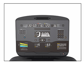 顯示:速度、坡度、時間、心跳、卡路里、距離、步