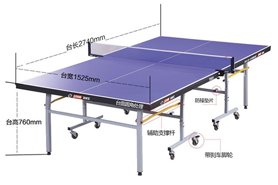 單折疊式乒乓球臺設計新穎穩定性強,折疊存放方便。球臺帶有滑輪,方便運動;輔助支撐桿增加球臺牢固性;可折疊桌面方便收納;