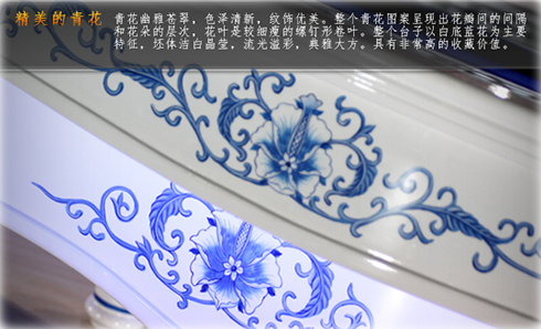 以白底藍花為主要特征,坯體潔白晶瑩,青花幽雅蒼翠,色澤清新,紋飾優美。