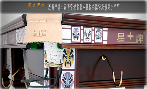 厚重的實木著色與印制LOGO的臉譜插板對比,