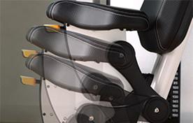 鉸接式車座獲得專利的彈簧輔件座椅調節自動將角度與高度位置 連接起來,以便個子矮小的用戶可以在較高的座椅高 度觸到地板,而個子高大的用戶也可以在較低的座椅 高度得到適當的支撐。 |