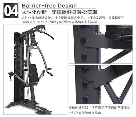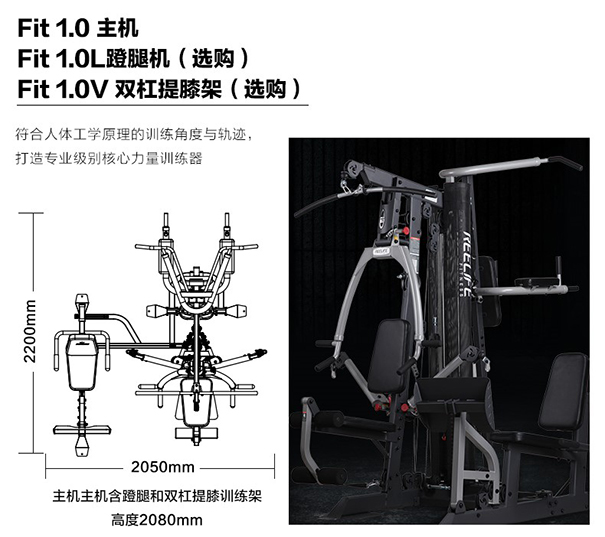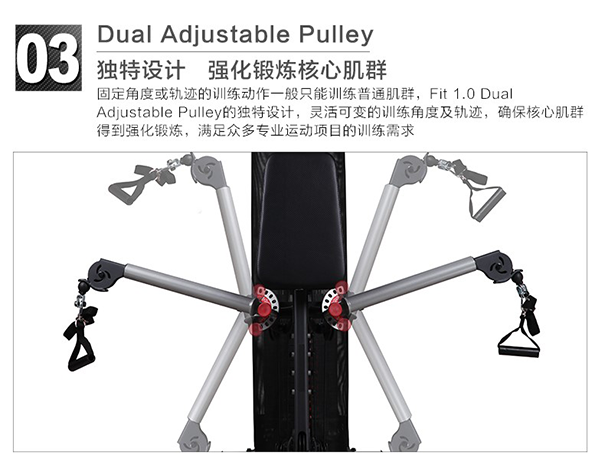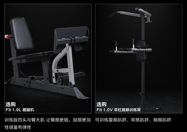 Fit1.0綜合訓練器擁有近50項專業訓練功能,從肩部到小腿,每一處肌群都能得到很好的訓練。